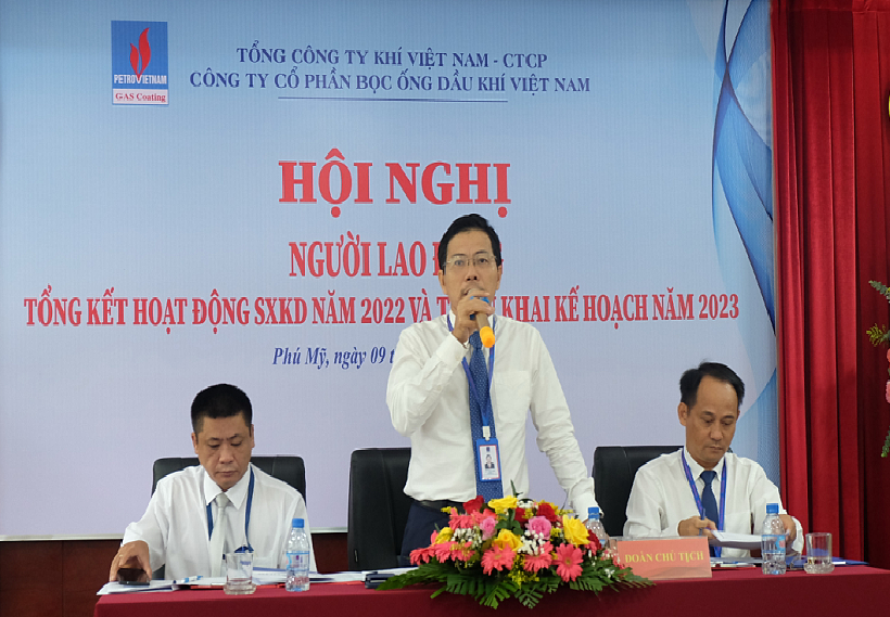 Ngày 09/12/2022, Công ty Cổ phần Bọc ống Dầu khí Việt Nam (PVCoating) long trọng tổ chức Hội nghị người lao động và tổng kết hoạt động SXKD năm 2022, triển khai kế hoạch năm 2023. Tham dự Hội nghị, về phía Tổng công ty Khí Việt Nam – CTCP, có ông Đỗ Đông Nguyên – Thành viên HĐQT, ông Huỳnh Quang Hải – Phó Tổng giám đốc, ông Nguyễn Đăng Hiếu – Phó Chủ tịch Công đoàn, các ông/bà đại diện Lãnh đạo các ban chuyên môn của Tổng công ty. Về phía PVCoating, có ông Bùi Tường Định – Bí thư Đảng uỷ, Chủ tịch HĐQT; ông Nguyễn Phương Cảo – Phó Bí thư Đảng uỷ, thành viên HĐQT, Giám đốc Công ty; các ông/bà thành viên HĐQT, phó giám đốc, trưởng các tổ chức đoàn thể và gần 50 CBCNV đại diện cho 151 người lao động đang làm việc tại Công ty.