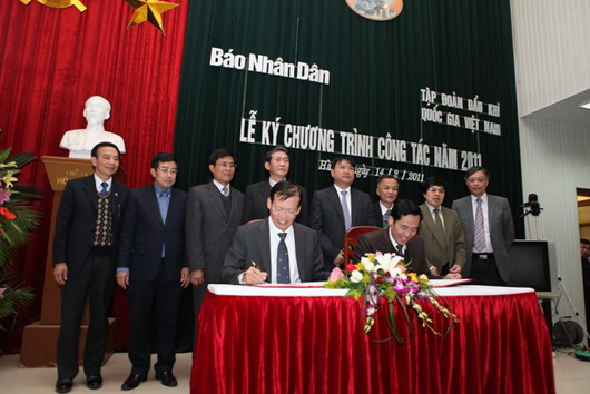 15/2/2011 Ngày 14-2, tại Báo Nhân Dân, đã diễn ra lễ ký kết Chương trình phối hợp công tác năm 2011 giữa Tập đoàn Dầu khí quốc gia Việt Nam và Báo Nhân Dân.