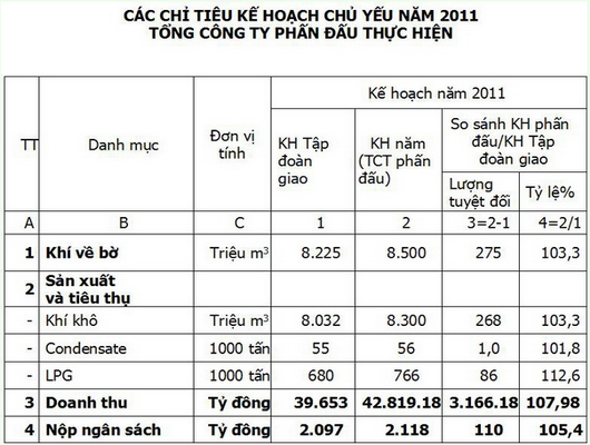 Chương trình hành động năm 2011 của Tổng Công ty Khí Việt Nam