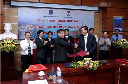 Ký thỏa thuận hợp tác giữa Thông tấn xã Việt Nam và Petrovietnam 06/8/2010 Ngày 6/8/2010, tại trụ sở Tập đoàn Dầu khí Quốc gia Việt Nam (Petrovietnam), Lễ ký thỏa thuận hợp tác giữa Thông tấn xã Việt Nam (TTXVN) và Petrovietnam đã diễn ra dưới sự chứng kiến của Lãnh đạo Petrovietnam, Lãnh đạo TTXVN cùng đông đảo cán bộ Petrovietnam, Thông tấn xã Việt Nam. Ông Trần Mai Hưởng - Tổng Giám đốc TTXVN (bên trái ảnh) và ông Phùng Đình Thực - Tổng Giám đốc Petrovietnam ký thỏa thuận hợp tác giữa Thông tấn xã Việt Nam và Tập đoàn Dầu khí Quốc gia Việt Nam chiều 6/8/2010 (Ảnh: Hoàng Tuấn).
