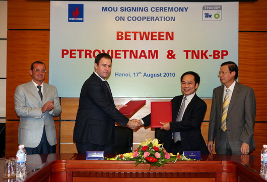 Chiều 17/8/2010, tại trụ sở Tập đoàn Dầu khí Quốc gia Việt Nam, Lãnh đạo Tập đoàn Dầu khí Quốc gia Việt Nam (Petrovietnam) đã ký Biên bản ghi nhớ về hợp tác với Công ty TNK-BP (Nga). Tham dự lễ ký có đồng chí Phùng Đình Thực - Phó Bí thư Đảng ủy, Tổng Giám đốc Tập đoàn Dầu khí Quốc gia Việt Nam, ông Maxim Barskiy – Phó Chủ tịch HĐQT TNK-BP cùng đại diện lãnh đạo của hai bên. |